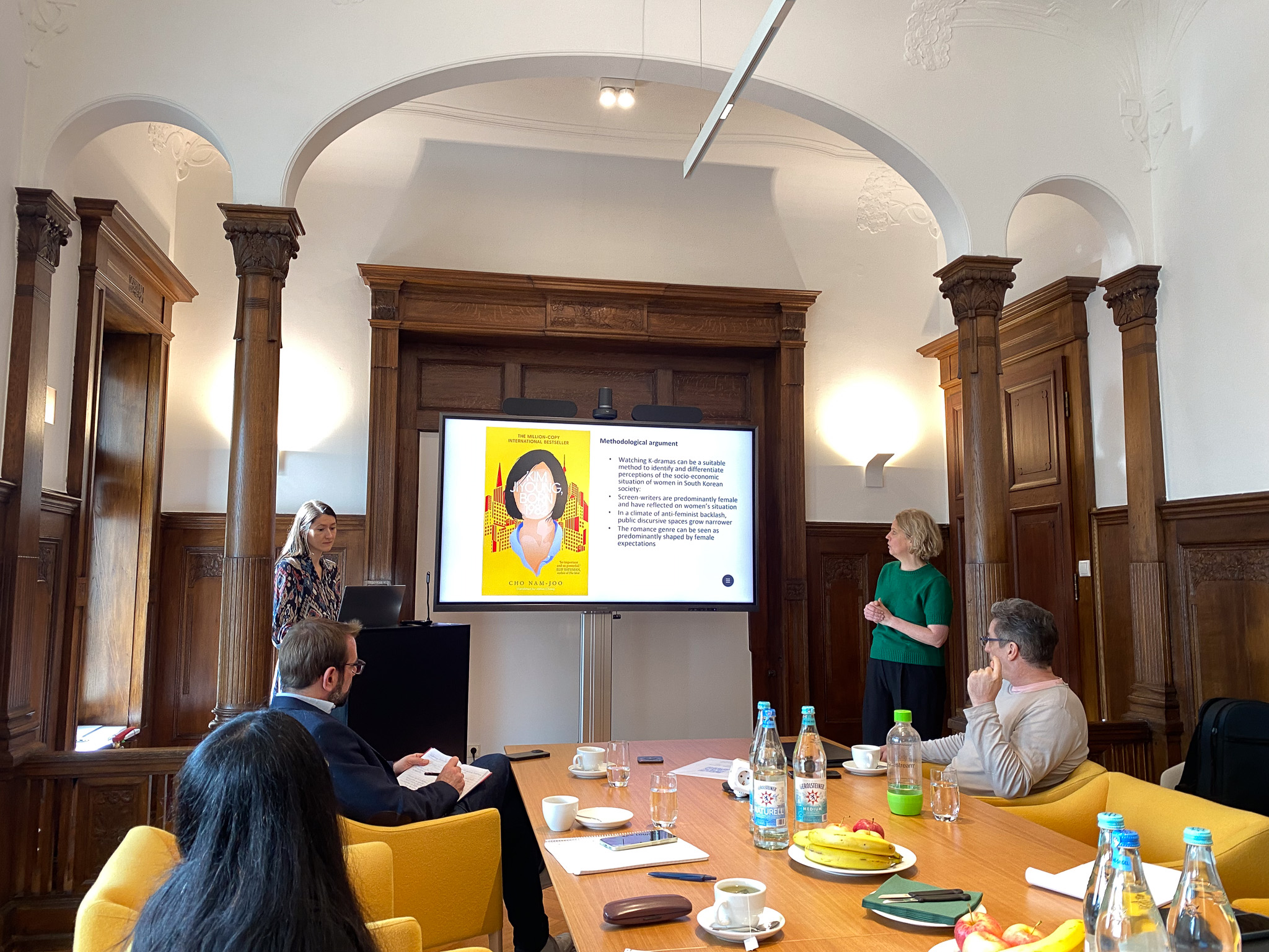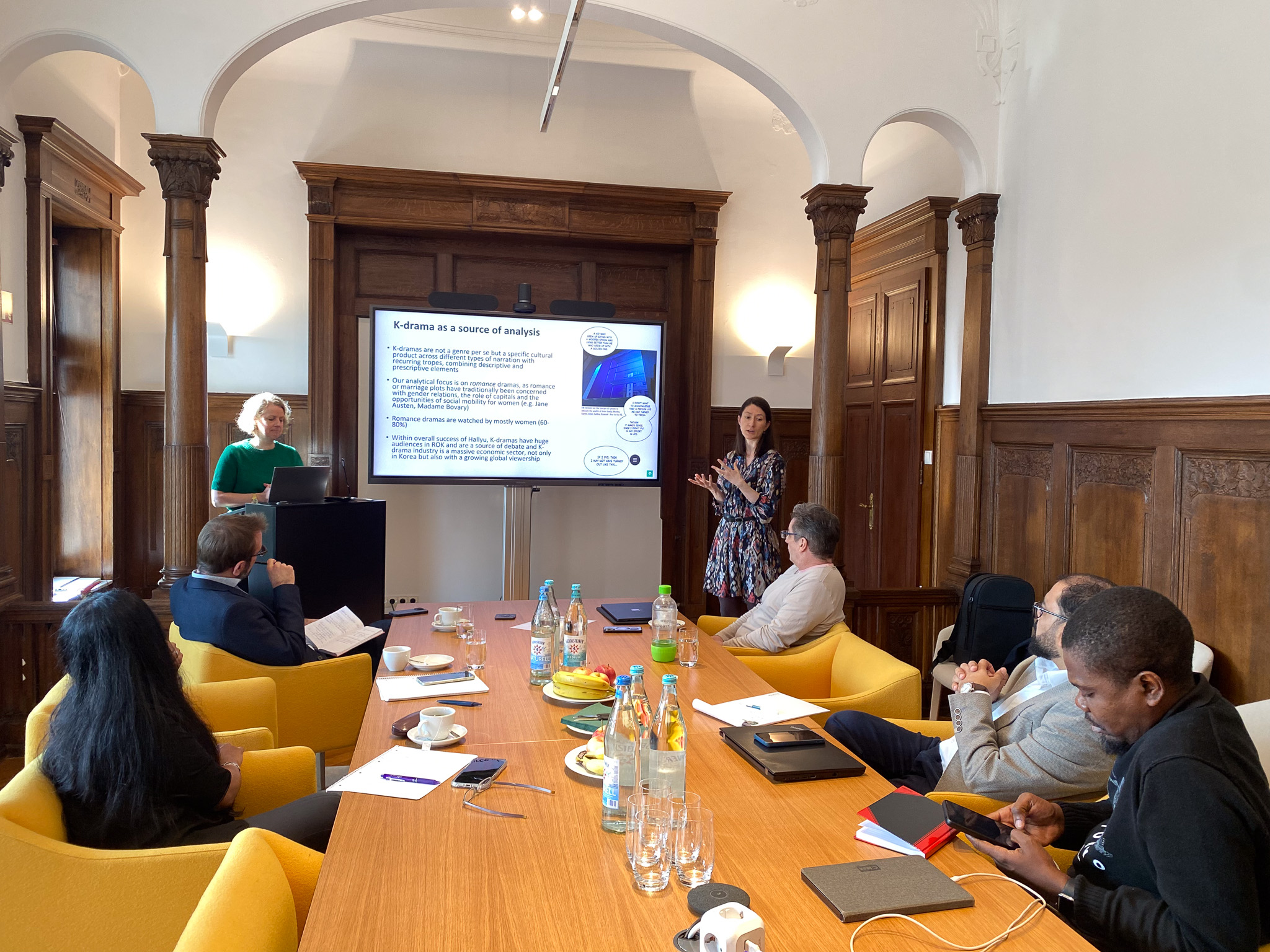 Die Fallauswahl der beiden umfasst insgesamt 40 Serien, die zwischen 2011 und 2021 produziert wurden. Sie stellten einige davon exemplarisch vor und trugen den Fellows sieben identifizierte Strategien vor, wie Frauen in diesen Serien der soziale Aufstieg gelingt: erstens durch harte Arbeit und Integrität, zweitens durch Ausbildung und Verbesserung ihrer Fähigkeiten, drittens Aussteigertum, wenn der Karriereweg zu belastend ist, viertens Autonomie anstatt sich auf Männer zu verlassen, fünftens weibliche Solidarität und Freundschaft, sechstens weibliche Rollenvorbilder und Netzwerke und siebtens Verbundenheit zu Männern. Diese Untersuchungsergebnisse sowie die Methodik und der Ansatz des Papers wurden umfassend von den Fellows diskutiert.