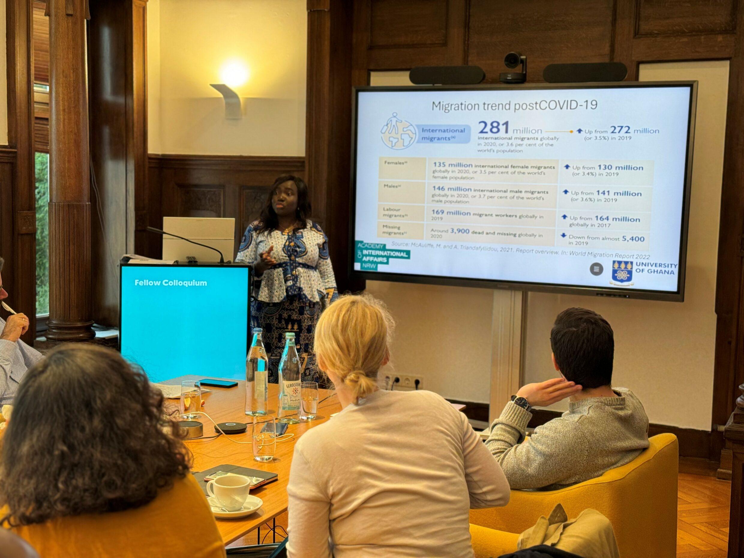 On March 21st AIA Fellow Gladys Dzansi presented her research program in the colloquium. She is dealing with the influence of digitalisation on the international migration of health workforce from low- and middle-income countries (LMICs). As a trained nurse, she knows the work in this field both as a practitioner and in theoretical reflection.
