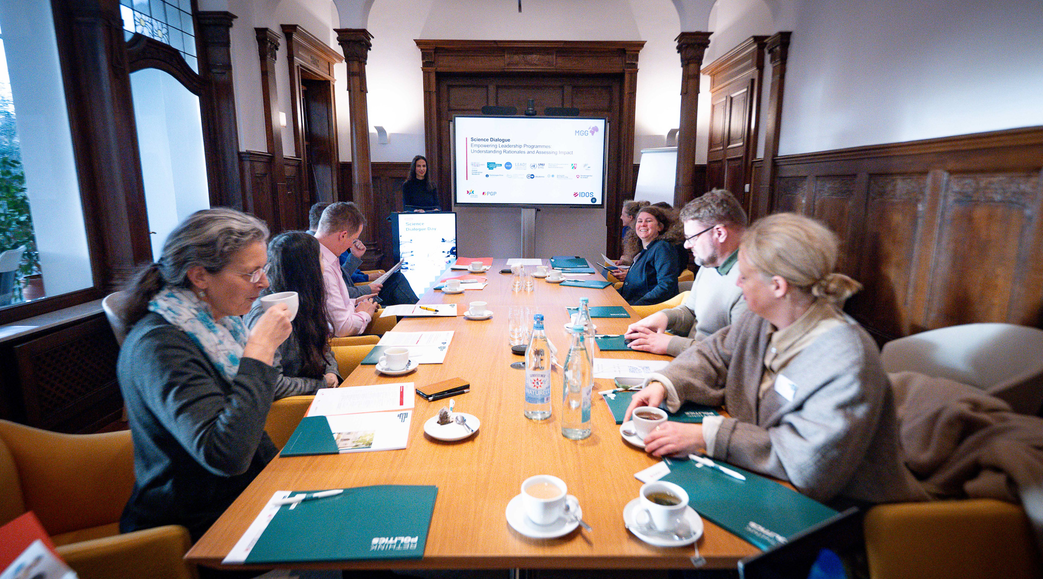 Initiated by the Bonn based IDOS, the third meeting of the Science Dialogue Day took place at AIA this year. The networking and exchange event for invited representatives of leadership programmes in North-Rhine-Westphalia brings together professionals in research, training and fellowship institutions. Identifying shared interests and challenges is a main purpose of this meeting format, and the collegial atmosphere has fostered dialogue about such key issues as diversity and, at the most recent meeting, impact. How can the quite diverse actors like big research institutes such as IDOS, international study programmes at NRW universities and the United Nations University, the training programme at Deutsche Welle and AIA‘s own international fellowship programme generate sustainable societal and policy impact?